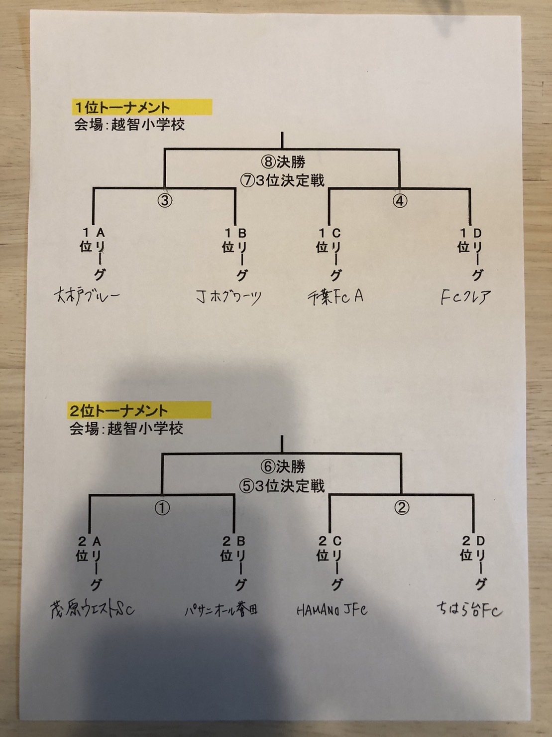 | 大木戸招待決勝:2023/11/19 ご参加いただいたチームの皆様、ご協力いただいた関係各位ありがとうございました。今年も無事に大木戸招待を開催することができました。 大木戸招待優勝 千葉 FC 準優勝 大木戸ブルー 3位 FCクレア 2位リーグ優勝 パサニオール誉田 FC 3位リーグ優勝 大木戸レッド 千葉 FCさんと大木戸ブルーの決勝戦はとても盛り上がりました。大木戸ブルーは大声援を受けて頑張りました。千葉 FCさんは完全アウェイでしたが素晴らしいプレーでした。 1位トーナメントブルーVSJホグ 4-1コタロウ4決勝ブルーVS千葉FC 2-2(PK0-2)イクト、コタロウ優秀選手 コタロウ 3位リーグレッドVSベール誉田 5対1ともき1 ハルマ3 オウンゴールVS大木戸イエロー 7対0はるま、しゅうた、りゅうせい、ひろと、ゆり、ともき、ゆうた3位リーグ優勝優秀選手賞 ゆり |