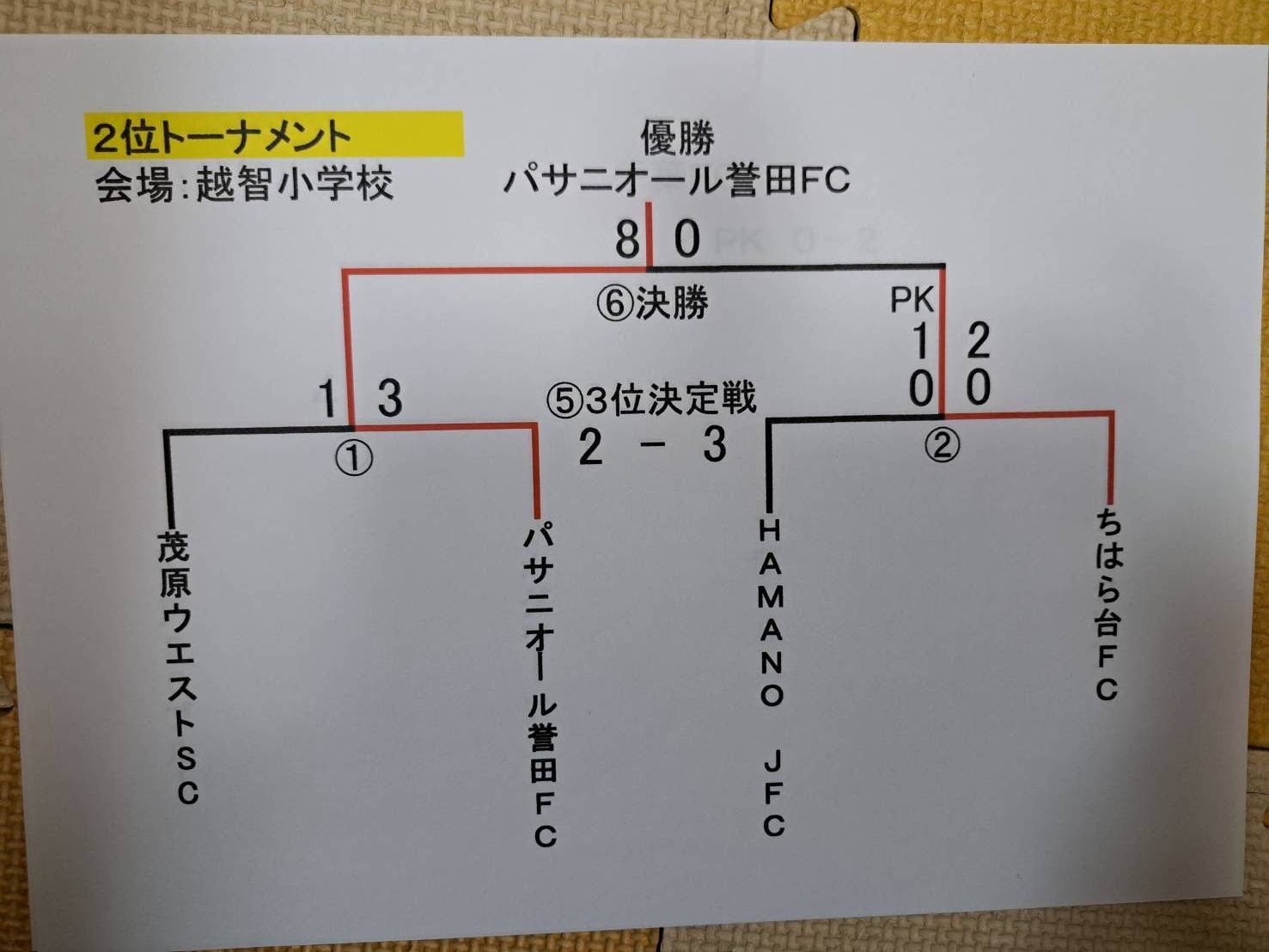 | 市長旗杯:2023/02/19 対戦チームの皆様、ありがとうございました vs稲毛 1-0 ○ こたろう vs美浜コパソル ○ こたろう2、きょうすけ、いくと 決勝トーナメント vs みつわ台 FC 3-4 ○ こたろう3点 優勝チーム みつわ台 FCさんに残り4分追いついたのですが、最後、勝ち越されてしまいました。 みつわ台FCさん優勝おめでとうございます。
